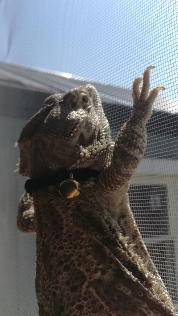 Please visit our homepage @ lizardplanet.com and tap that menu icon for tips on caring for lizards. Visit the contact page if you need advice regarding lizard care, or need assistance with adopting a homeless lizard to love (names & e-mails are never shared). We humbly accept Paypal donations to help us pay for our site, or sharing us on social media may help us too. And of course, you can bounce around in the archives for more Murph!