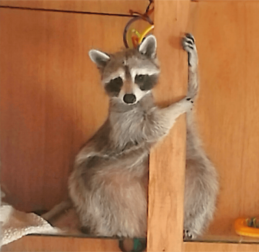 Also, this sweet raccoon child is rebelling against her human mom (me). She hasn’t played with me or allowed me to kiss her cute nose for months. I am going through Gypsy withdrawals. She charges toward me when she thinks I may interfere with her plans in home exploration (or renovation) , but she doesn’t hurt me. She IS serious about my not messing with her, but she’s only bluffing about actually biting my toes.