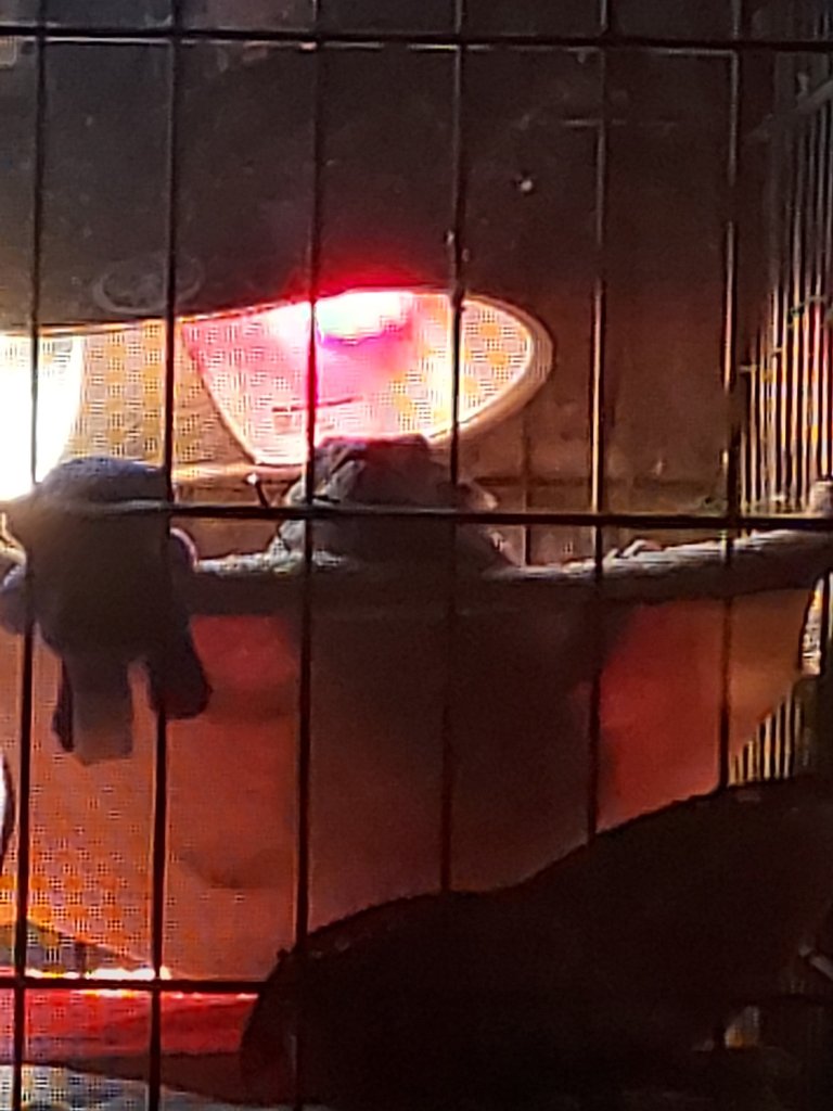 And then… he didn’t want to be moved. But, he was cold as a poppysicle (he’s too cute to be simply “cold as ice”), and needed his lights and warmth from his enclosure.