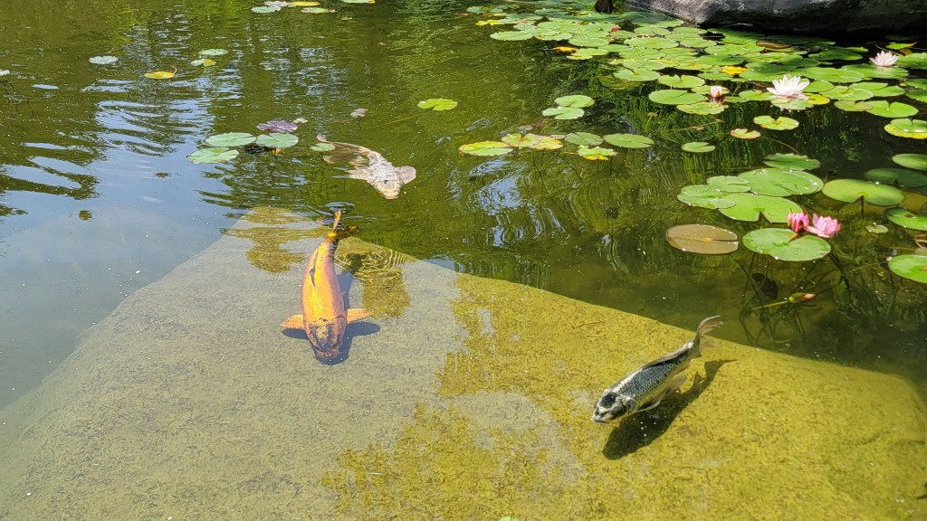 Renew, rejuvenate, rebirth, life force, Lil’ Murph, greenery, nature, butterfly friends, squirrel friends, rainbows, beautiful fish and life-giving water and sun… enjoy: