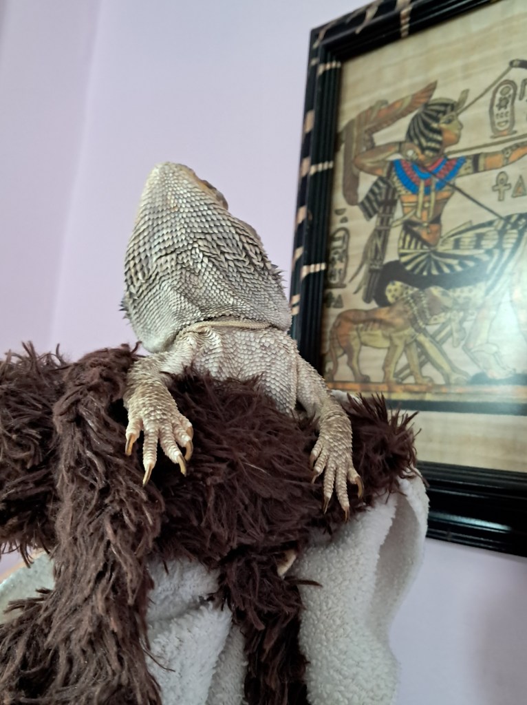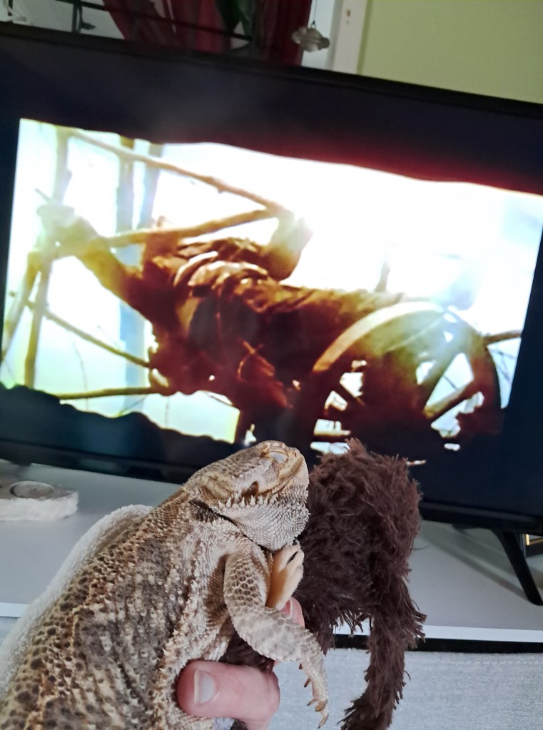 Today is one month since Murphy transcended as I held him on my heart. He and I knew… we just knew. I haven’t been blogging or supportive of others, as I don’t know how to help lizards or showcase Murphy right now, and it’s hard to do this without him. Still reeling in pain from the loss of my perfect best friend, I felt compelled to do our “Media With Murph” segment. Murph is here with me at the laptop as I type, the only way he can be.