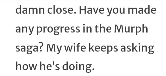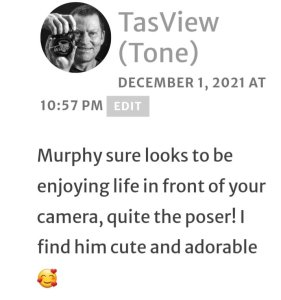 *Few who have truly gotten to know Murph (as good as online will allow) see him. Yes indeed, Murph knows I would not do this without reason (administer meds). Murph gets read to him many, many comments, including all specifically to him (because why the hell not?). We all speak to our animals, so reading to them isn’t a whole lot different. When he is addressed to, as an equal creature in the world, I think it very cool. How many animal friends get that level of care/respect? Speaking of nobody expecting to read something… each sentence in Christopher’s stories and poems is as unexpected as the one which proceeds it. Ordinary is boring, and Murph was actually a character in a neat and unexpected tale!